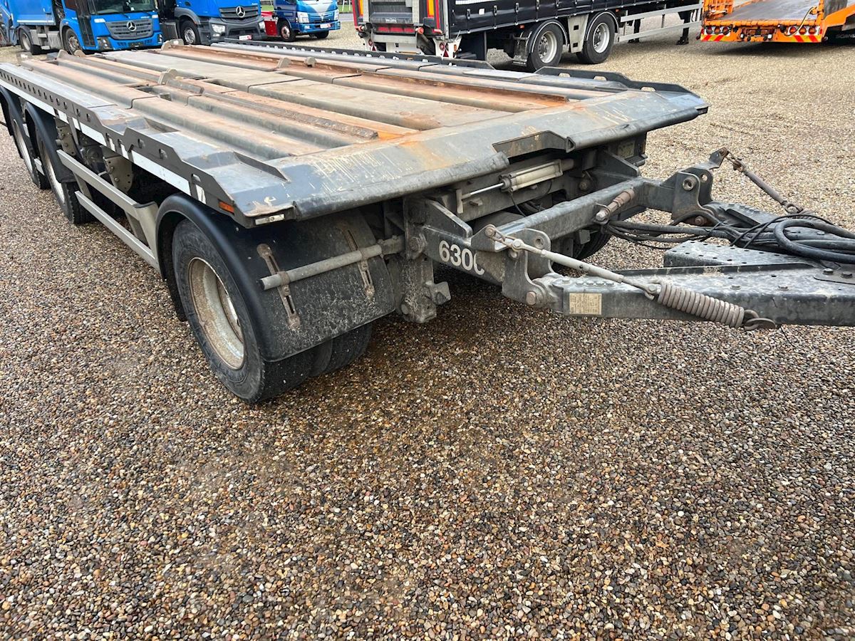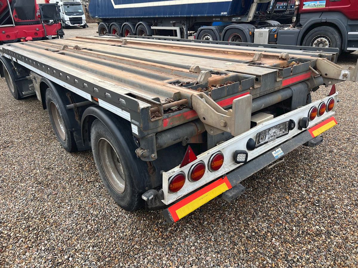 Denne CMT PT 3-aks overføringsanhænger er til containere i størrelsen 6,5 til 7,0 meter. Anhængeren er udstyret med 3-vejs tip, samt BPW-aksler med tromlebremser.