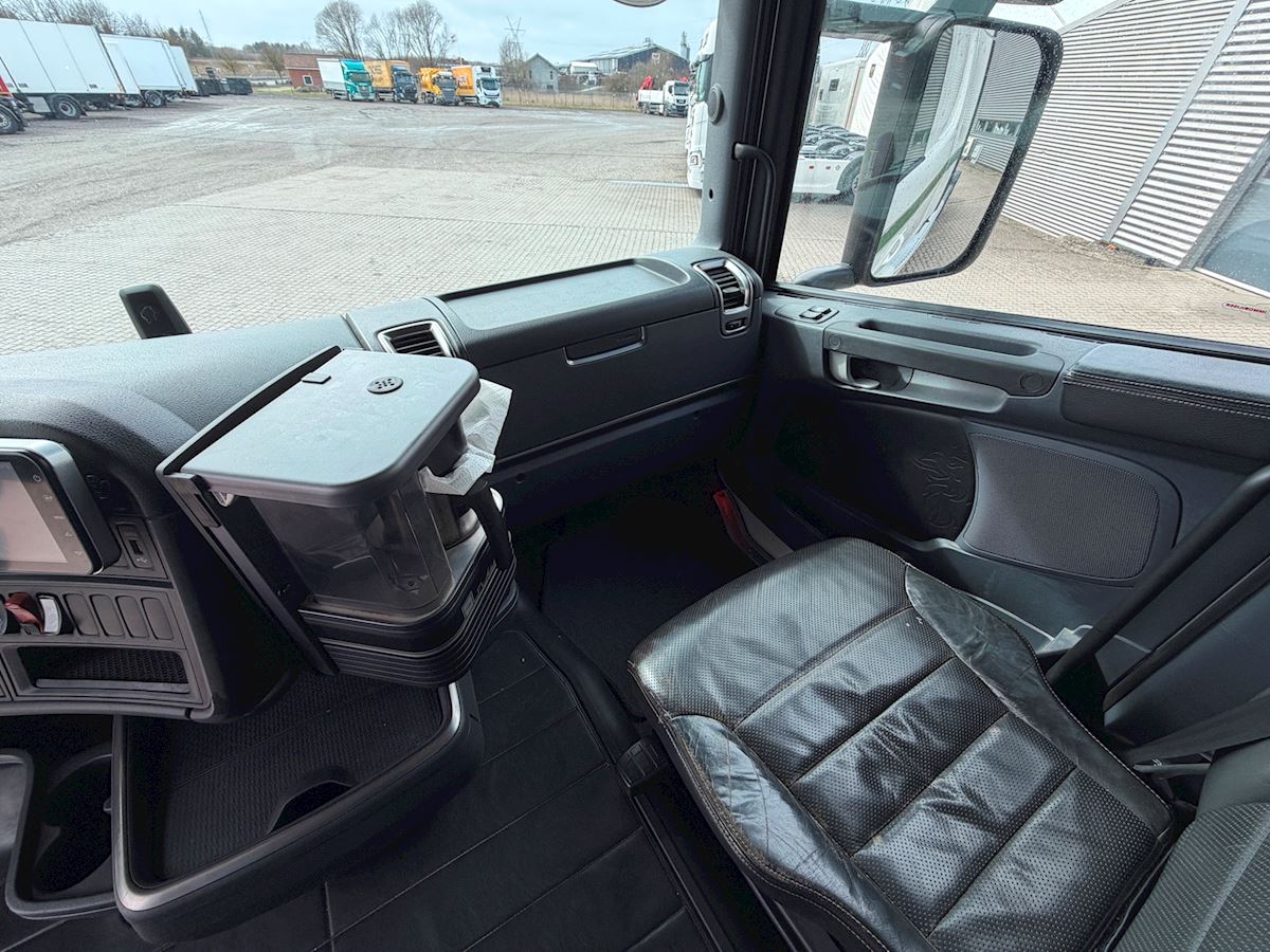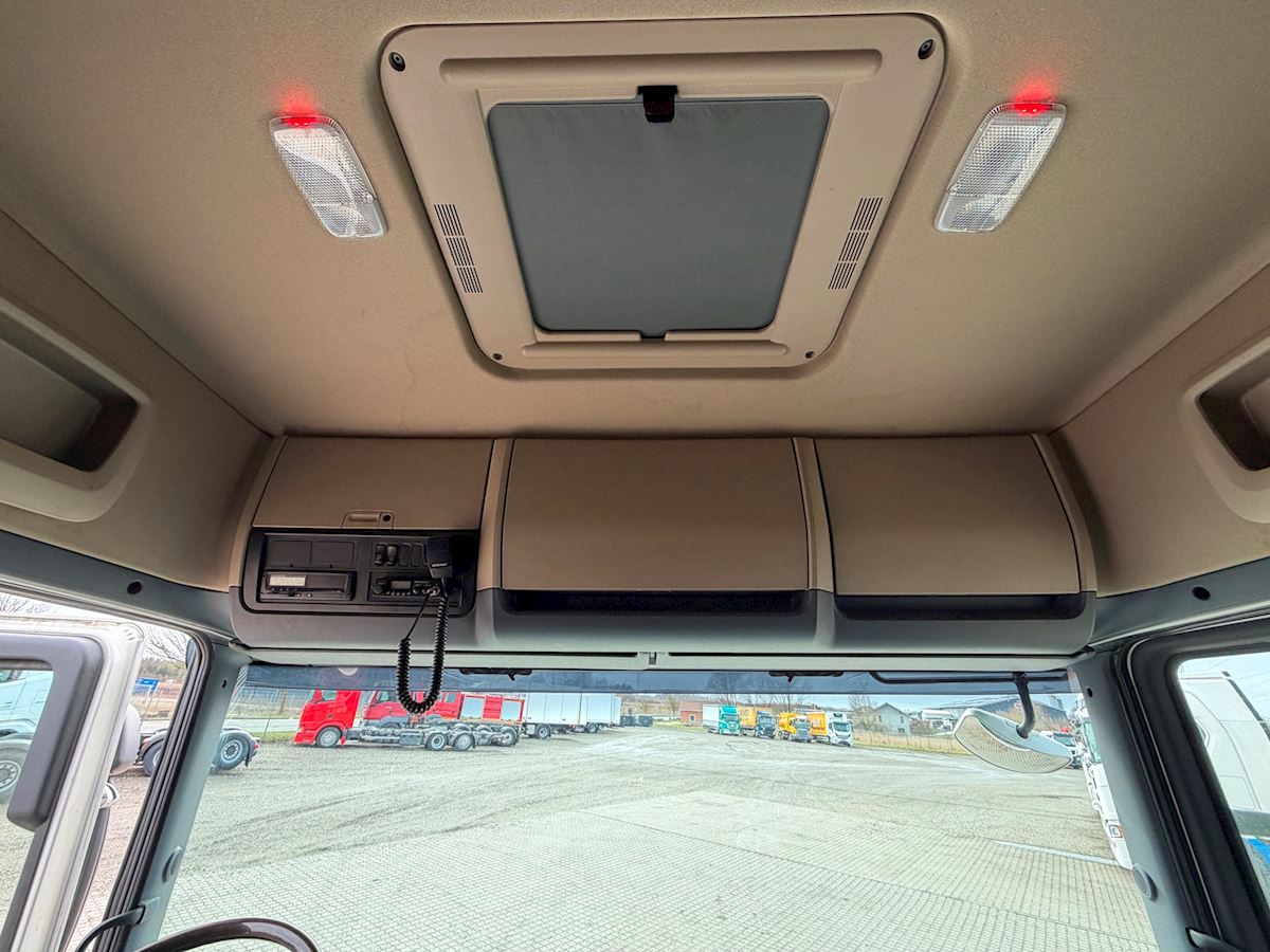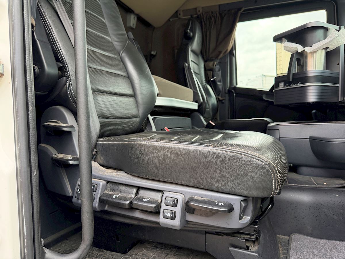 Kabinen er udstyret med fartpilot, sporassistent, lastindikator, kaffemaskine, navigation, radio og walkie. Derudover har den kabinevarmer, lædersæder samt et førersæde med både varme og ventilation.