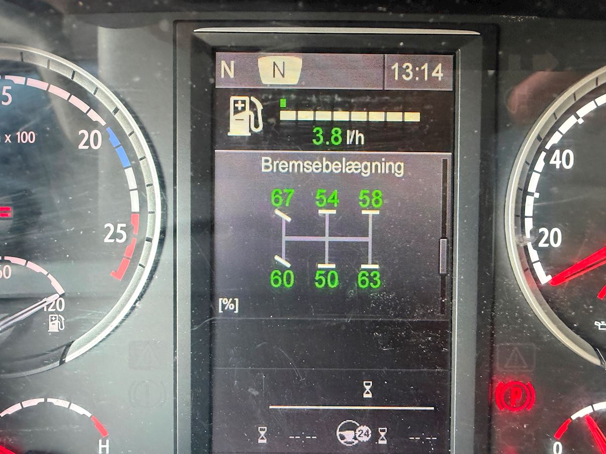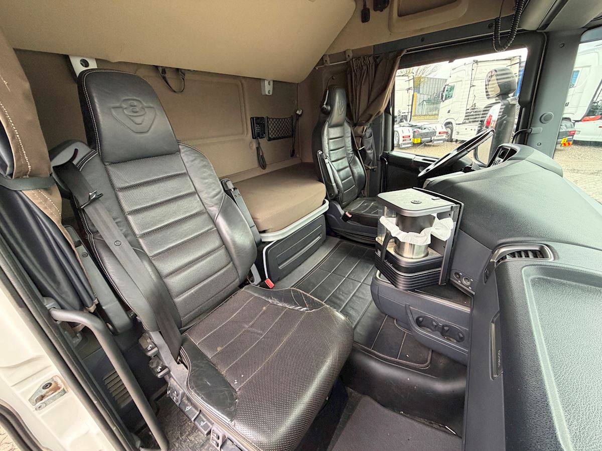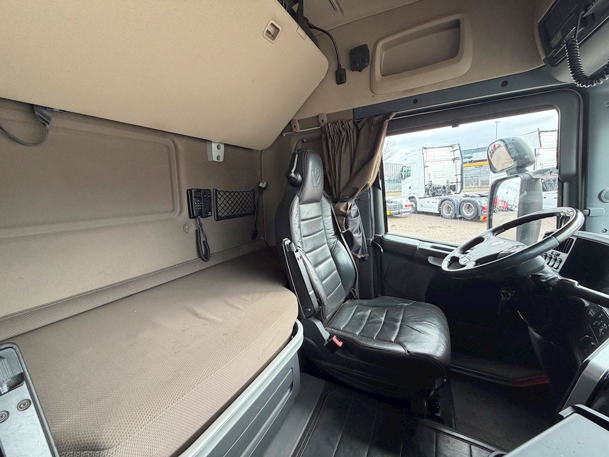 Kabinen er udstyret med fartpilot, sporassistent, lastindikator, kaffemaskine, navigation, radio og walkie. Derudover har den kabinevarmer, lædersæder samt et førersæde med både varme og ventilation.